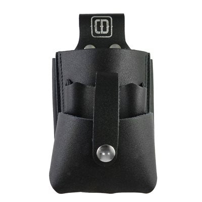 Fait de cuir noir pleine fleur 5oz et se porte à la ceinture. Étui similaire au DM-314-BLM plus un porte ruban à mesurer 25' en cuir. Pour stylos, couteaux utilitaires (2) ou crayon feutres (2), 2 grandes pochettes larges pour calculatrice ou calepin et une ouverture de chaque côté pour tournevis ou pince (les 2 ouvertures sont rivetées au bas avec rivet de métal anti-rouille). Courroie à deux boutons-pression pour la ceinture d'une largeur maximale de 1-1/2". Gousset d'expansion de 3/4" fait de cuir souple.5-1/2" x 3" x 8-1/2"